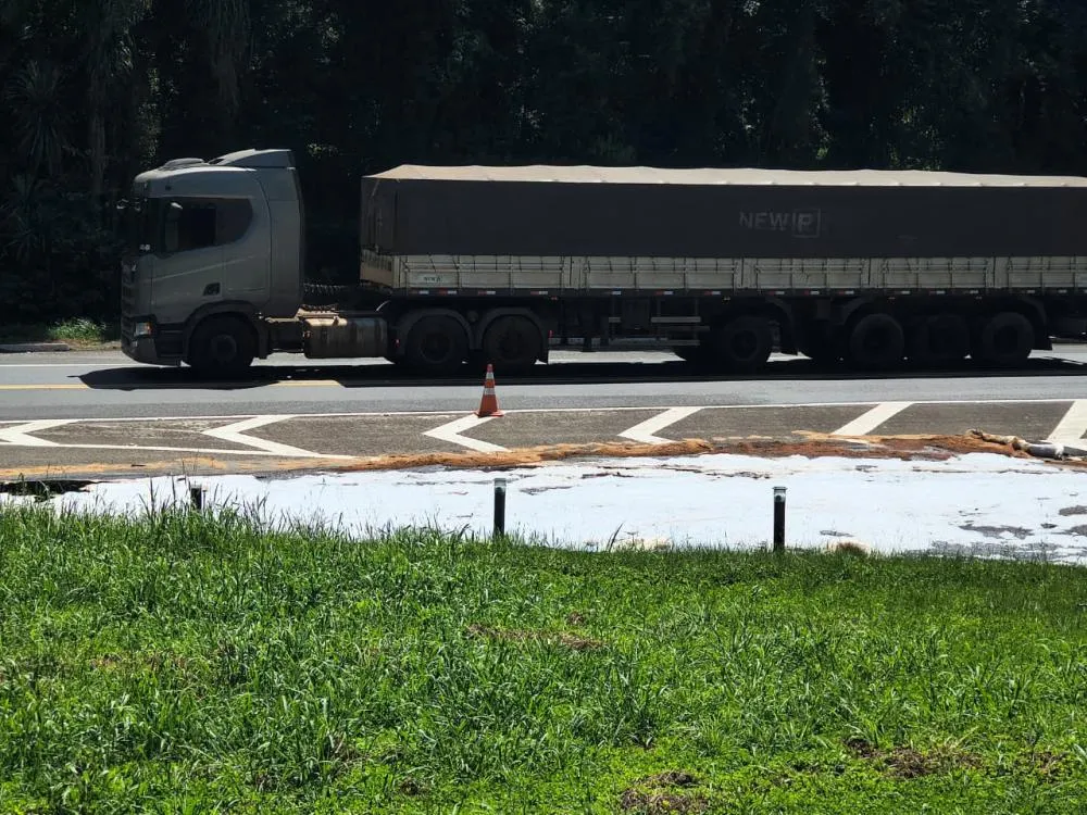 De acordo com as informações iniciais da PRF, o acidente foi do tipo colisão lateral entre dois caminhões que seguiam no mesmo sentido da rodovia.