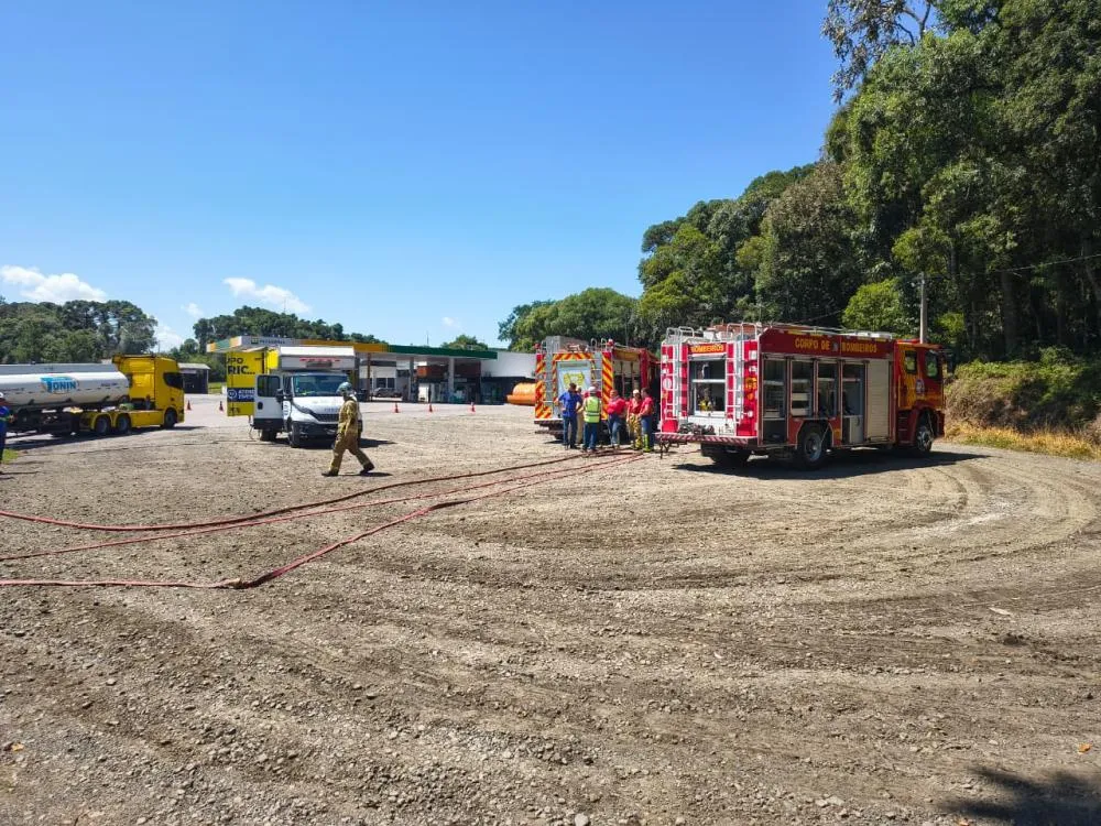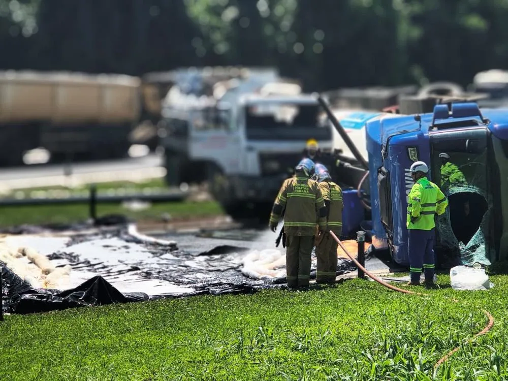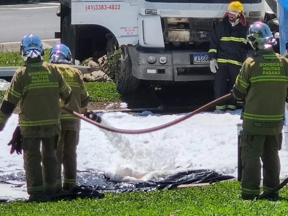Equipes do Corpo de Bombeiros Militar do Paraná foram acionadas ainda na noite do acidente e permaneceram no local durante toda a madrugada realizando ações de contenção e segurança.